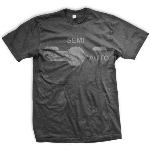 This screen printed t-shirt has a vintage look and quiet authority, which lets the world know that you keep your fire selector switch on automatic. You can find a similar fire selector switch on AR-15 rifles, except they will not generally go to auto.