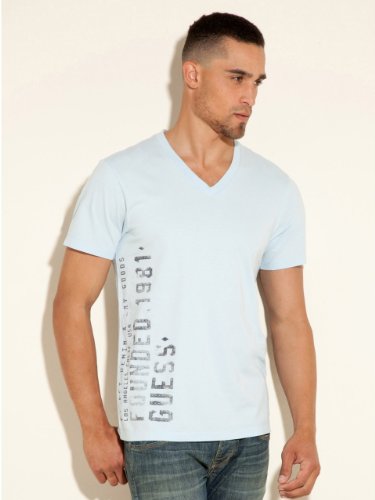 GUESS Basic V-Neck Tee with Founded 81, STARLIGHT BLUE (MEDIUM) Reviews